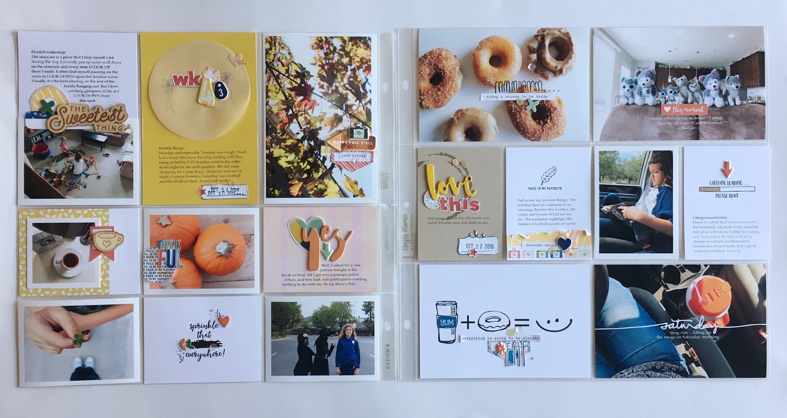 The colors of fall are finally showing up around here. I layered a few more printables and stickers from the kit on the photo.